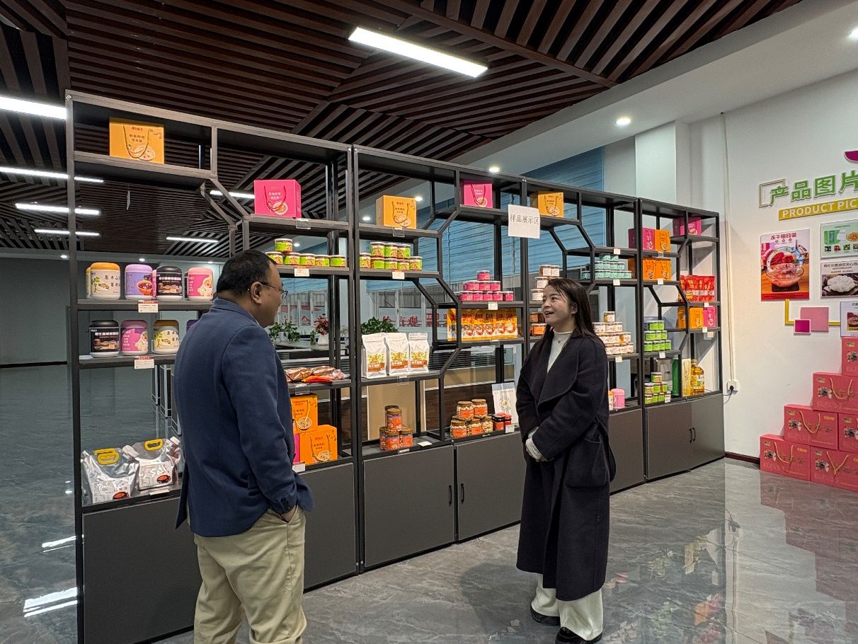 在岑巩县思旸镇特色食品产业园的贵州美洋洋食品有限公司,师生团队聚焦地方特色食品加工与产业化发展,学习企业生产流程、产品体系及质量安全管理要点,并针对新品开发、工艺改良与市场拓展中的技术瓶颈展开讨论。双方围绕食品加工关键环节控制、产品风味与营养保持、标准化与规模化生产协同等议题深入交流,并就未来科研合作、实习实践基地建设等达成初步共识。